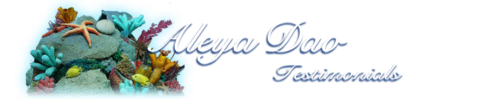 Aleya Dao shinesI was absolutely delighted with the insights and graceful, blessed way of presenting very practical and needed information. Aleya Dao just shines in what she does. I appreciate her course. Thank you. And the toning.....just brought me back to myself. Posted 10/12/2010
